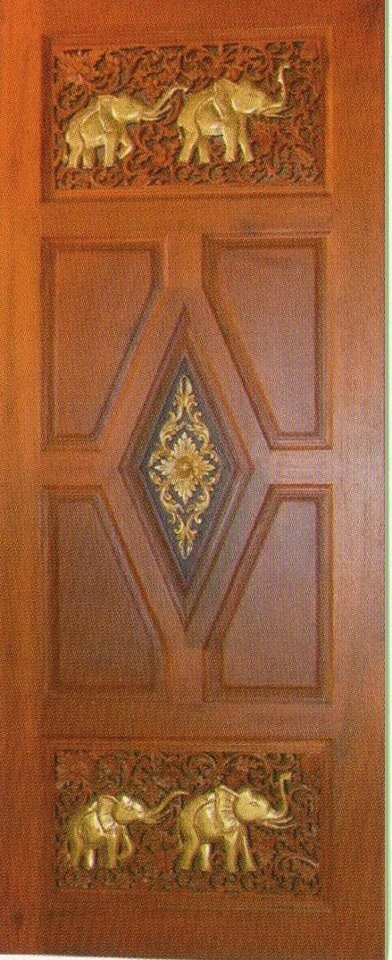 ประตูไม้สักลายมังกรแกะมุมดอก 80*200